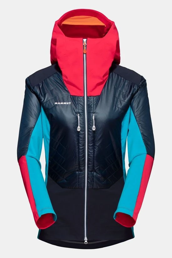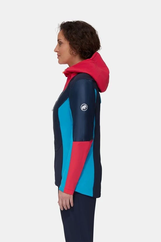 - Een perfecte combinatie van windbescherming en isolatie: het Eisfeld SO Hybrid Hooded Jacket voor dames van Mammut.